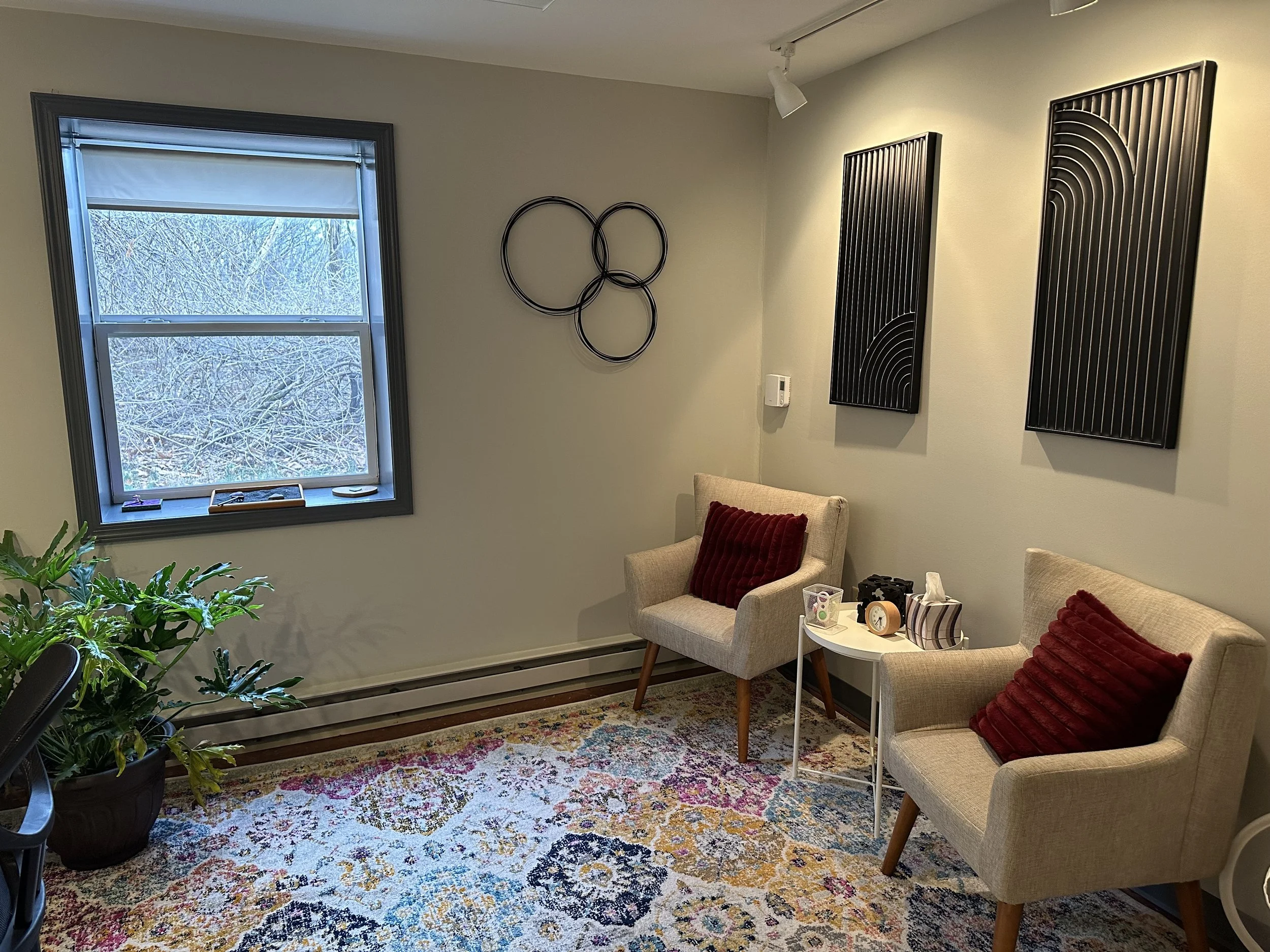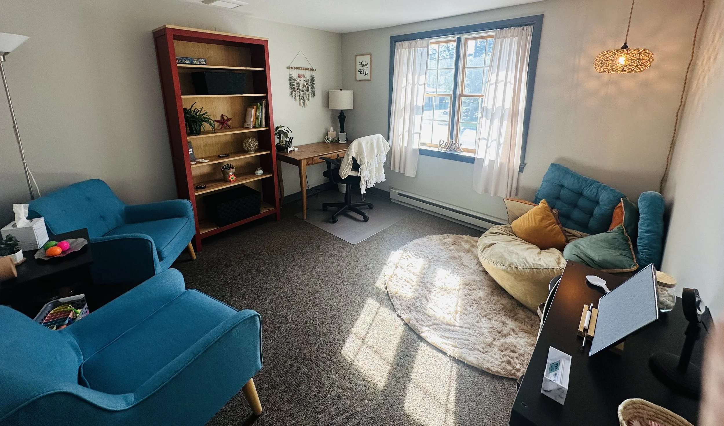 Our in-person therapy rooms offer a personalized experience, fostering a direct and tailored connection between you and your therapist. The face-to-face setting allows for a more intimate and customized approach to meet your unique needs.